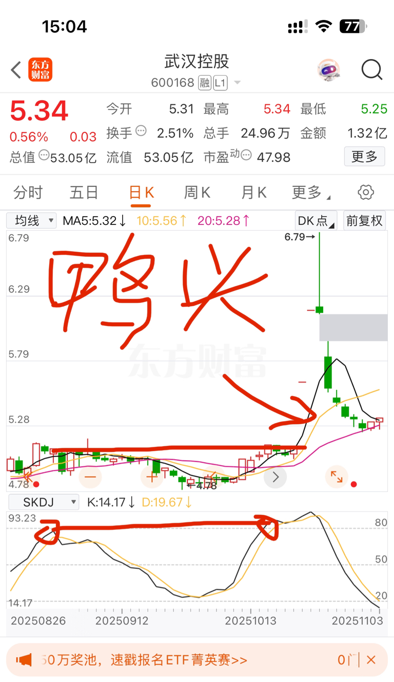 $武汉控股(SH600168)$ 船型底,老鸭头。一旦确定上补6.1-6.2缺口。船的底部4.78高点6.79均价5.78-5.79