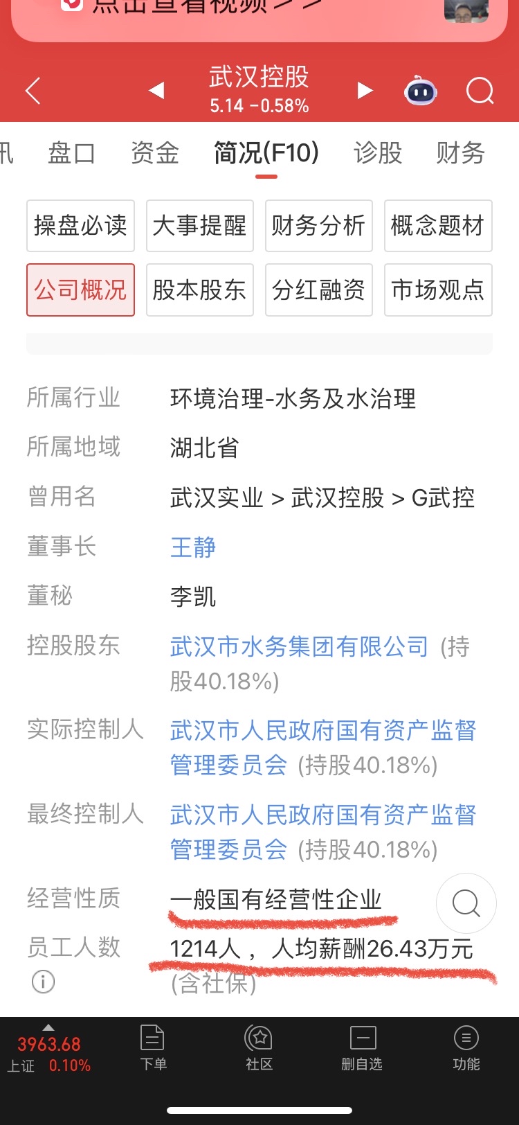 $武汉控股(SH600168)$ 国企公司待遇好