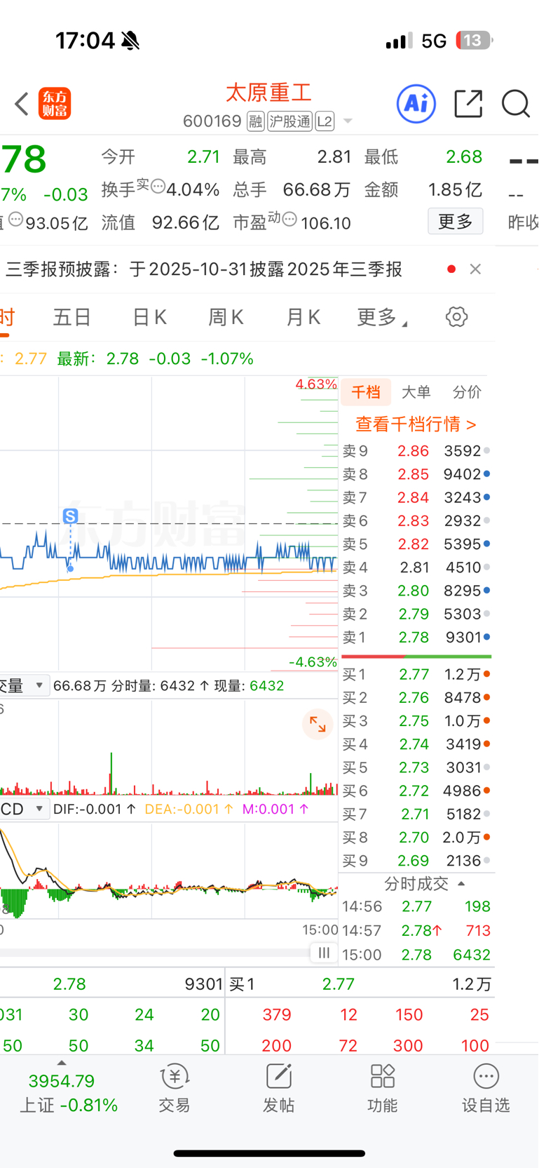$太原重工(SH600169)$ 我卖了,你可以涨了