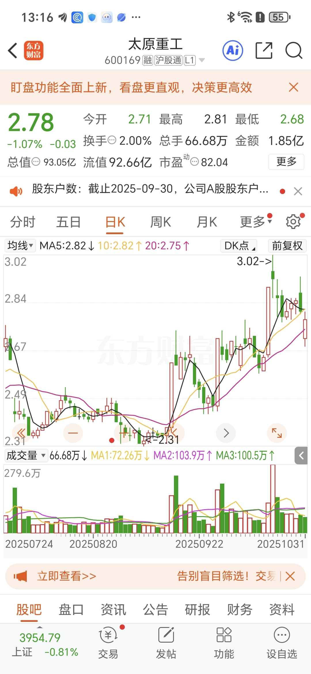 $太原重工(SH600169)$ 当初太原重工被立案调查的时候,就买入了,护盘!