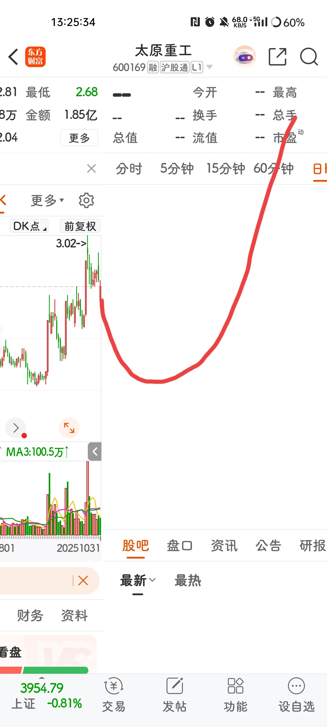 $太原重工(SH600169)$ 走势图帮各位画好了,跌到2.3附近止跌,然后由跌转涨