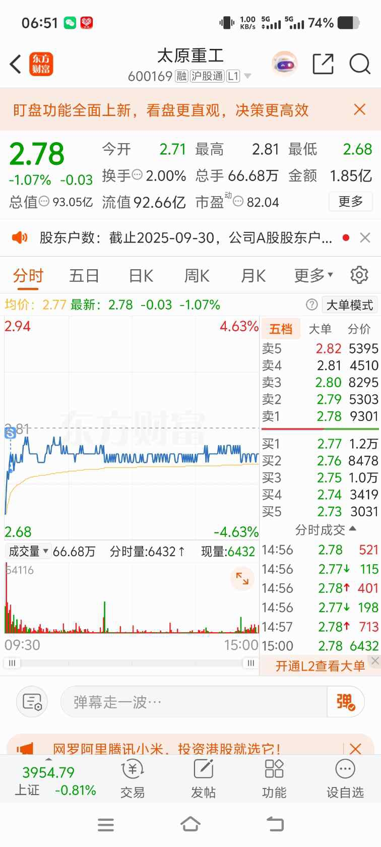 $太原重工(SH600169)$ 拿了快两年了,周五一个低开把我吓跑了
