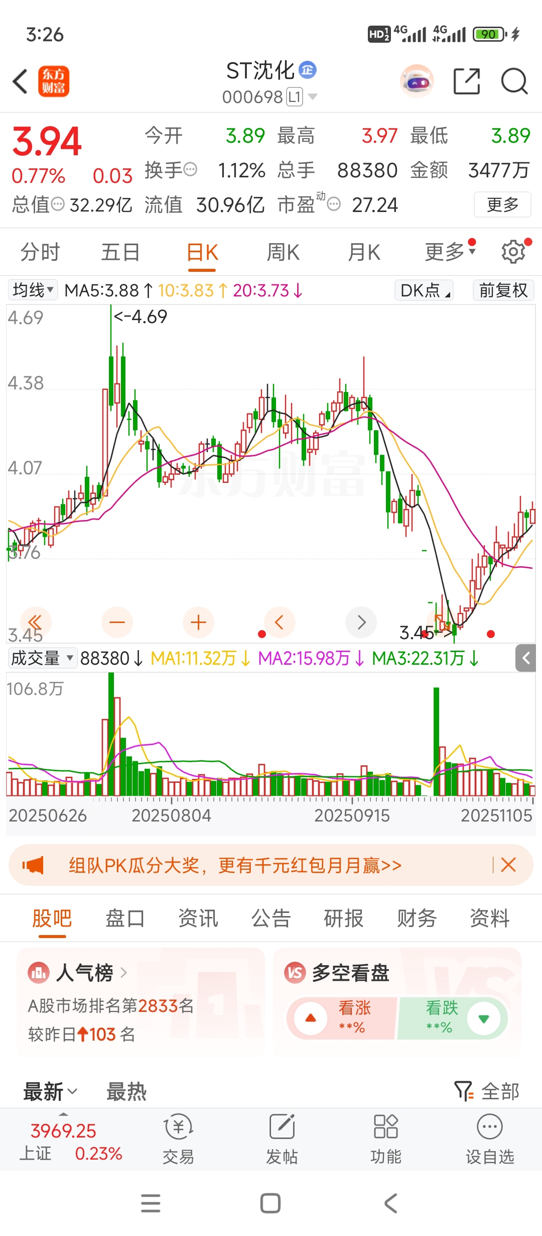 $ST太重(SH600169)$ 不用嘴硬,看一下st沈化,它st后走势图就明白这伙主力是怎么干的。明天红不红放一边,但开盘抢的人绝对一批一批!!汇洲与太重明天相互印证互为走势!!(一个四个跌一个两个跌,太重基础好,所以少)