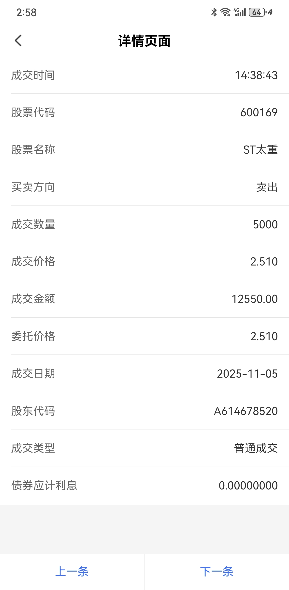 $ST太重(SH600169)$ 今天下午二点三十八分成交了