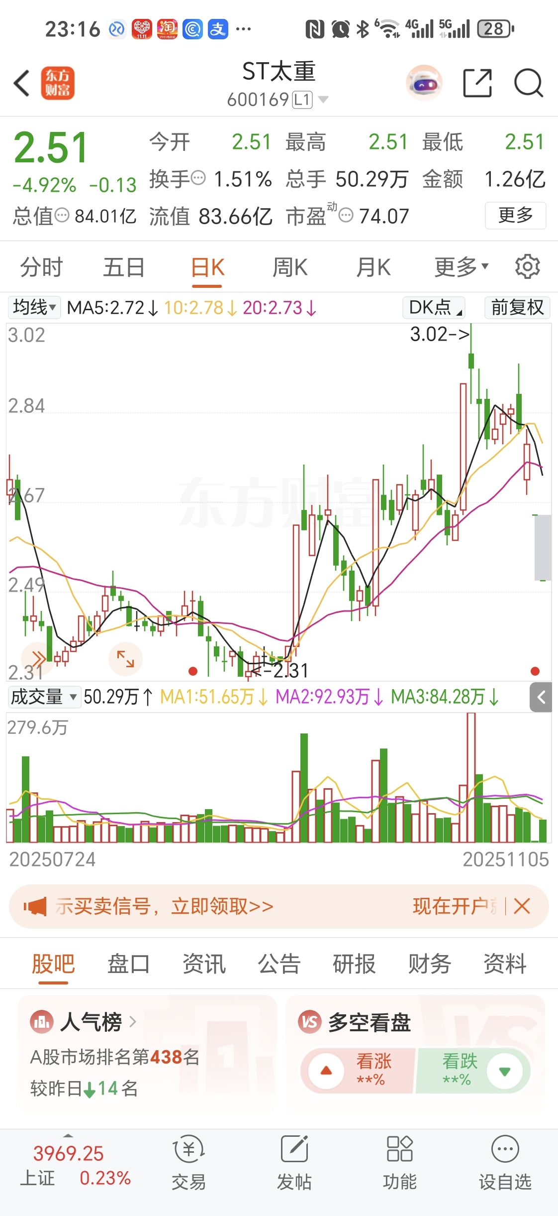 $ST太重(SH600169)$ 开板也不是底,2.31元不破,妖不起来的