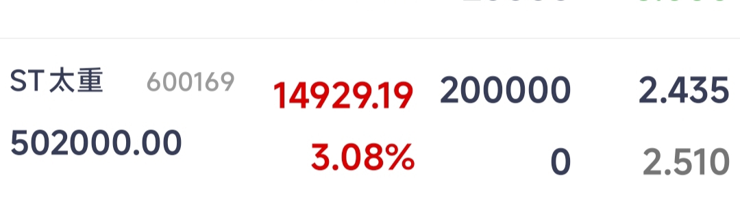 $ST太重(SH600169)$ 第一天三个点,明天如果五个点,那就是8个点了,满意