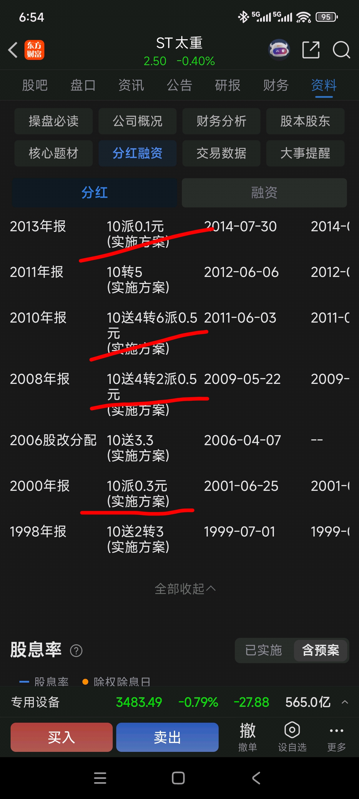 St太重,在历史上也没有进行过像样的现金分红。从98年上市至今,有四次现金分红行