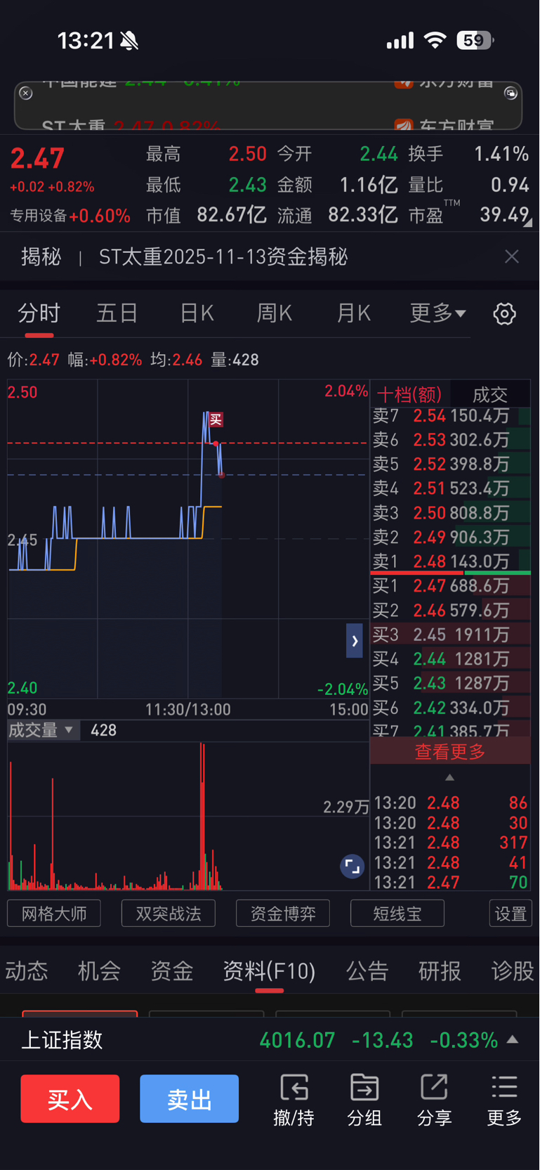 $ST太重(SH600169)$ 我又进来了,你可以跌了。