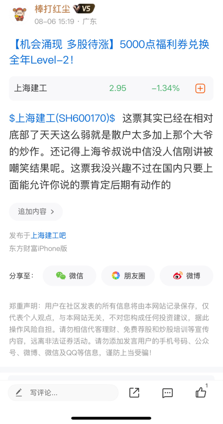 温馨提示: 1.根据《证券法》规定,禁止编造、传播虚假信息或者误导性信息,扰乱证券市场;2.用户在本社区发表的所有资料、言论等仅代表个人观点,与本网站立场无关,不对您构成任何投资建议。用户应基于自己的独立判断,自行决定证券投资并承担相应风险。《东方财富社区管理规定》