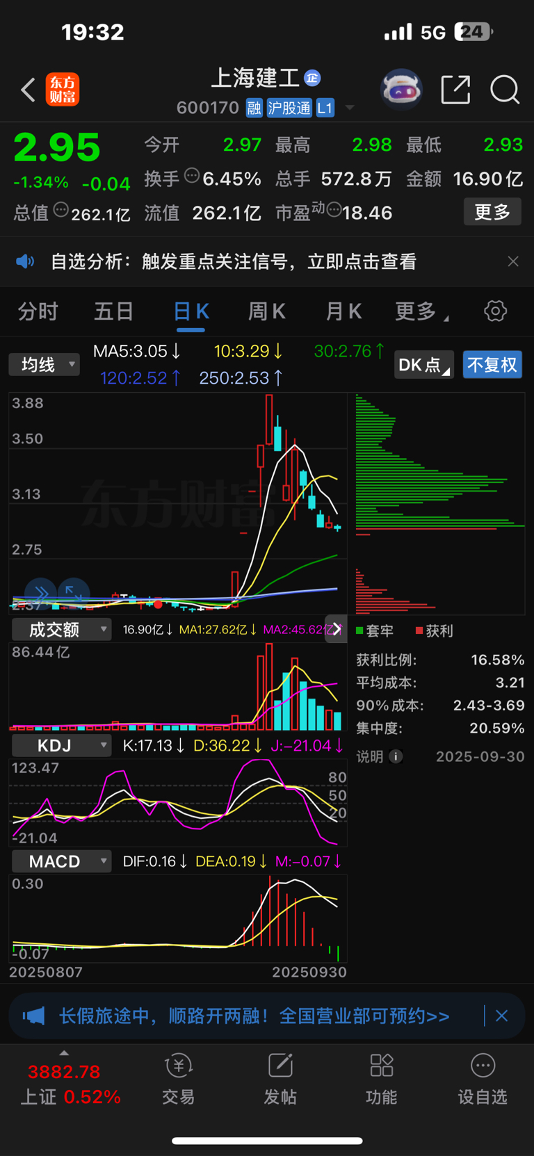 $上海建工(SH600170)$ 个人看法,套在山顶不少,没有大利好得调整最少两个月