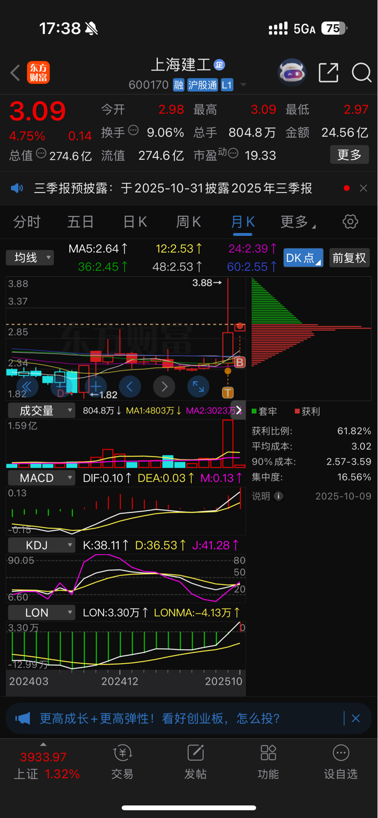 $上海建工(SH600170)$ 上车,至少4元