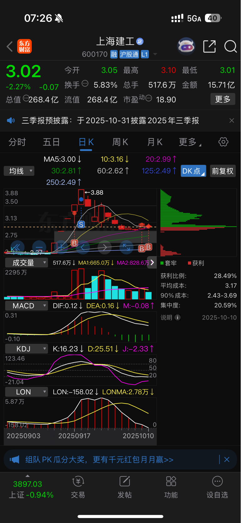 $上海建工(SH600170)$ 幸亏高点那天出来,搞了十个点不然倒亏