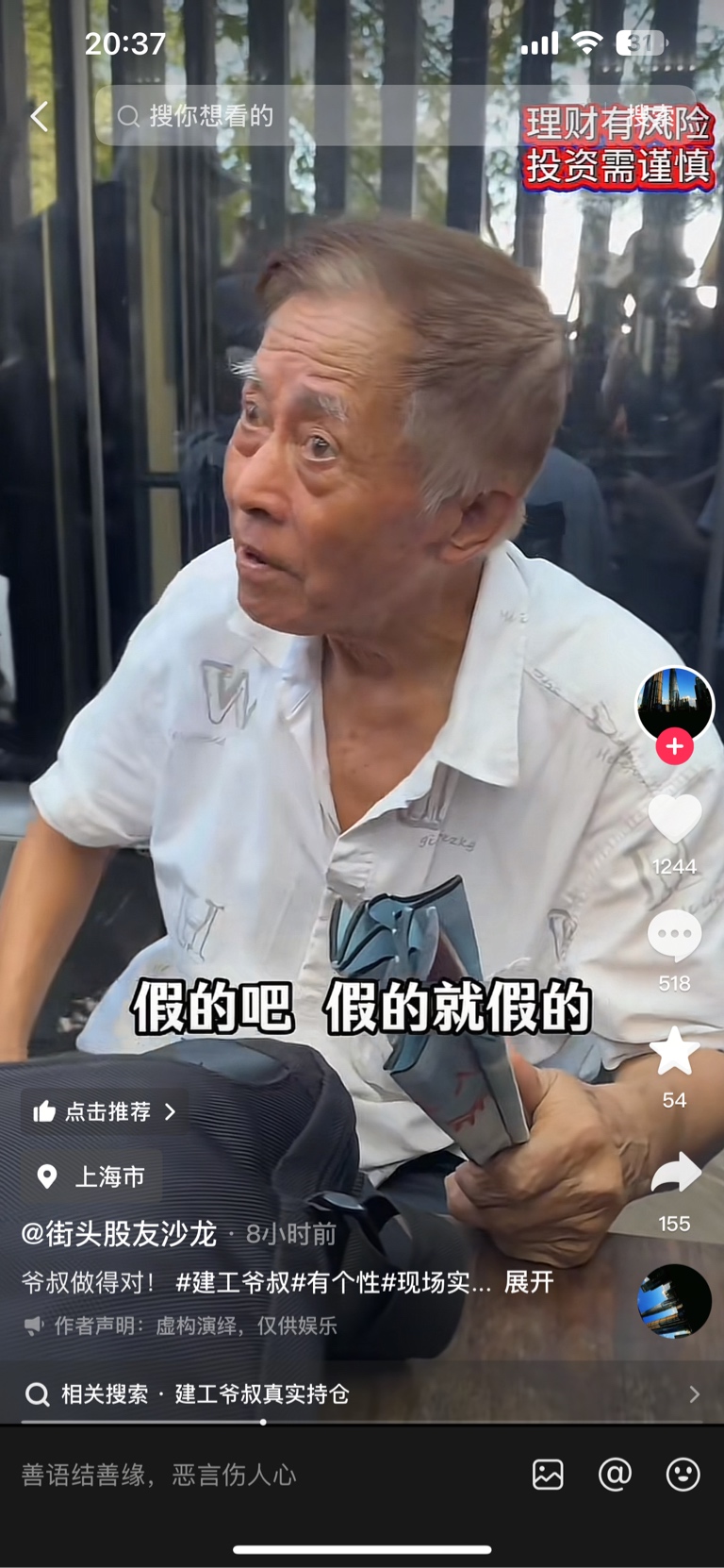 不要叫建功爷叔了,别人还以为他是上海建功的退休职工,应该叫建功老韭菜适合一点,高