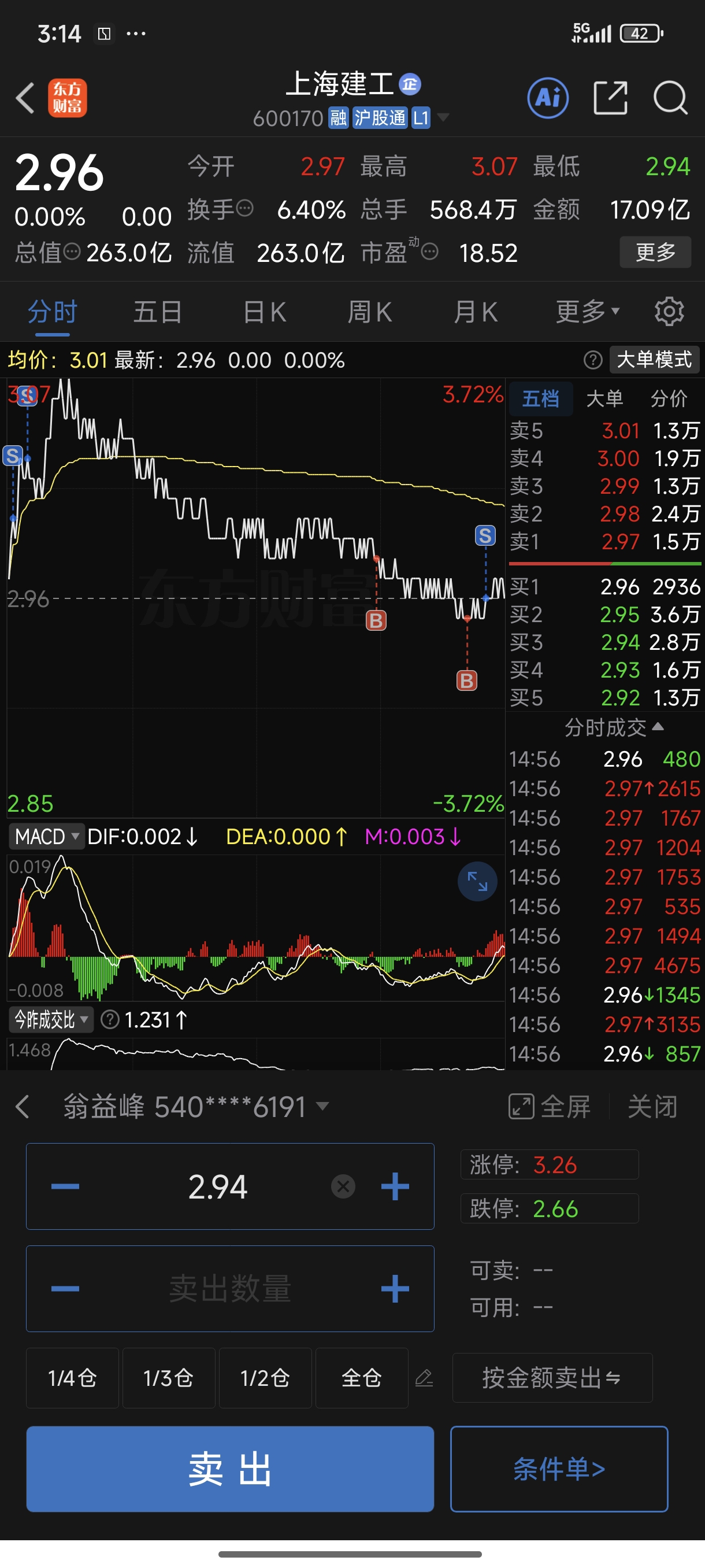 $上海建工(SH600170)$ 服了,这都能跌完,幸亏早上减了2/3