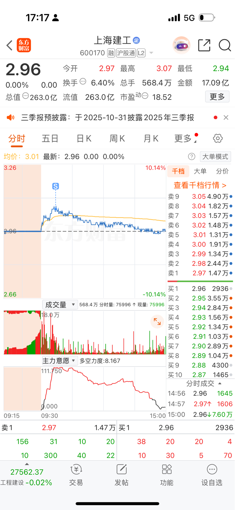 $上海建工(SH600170)$ 我跑了,米娜桑放心,明天涨停