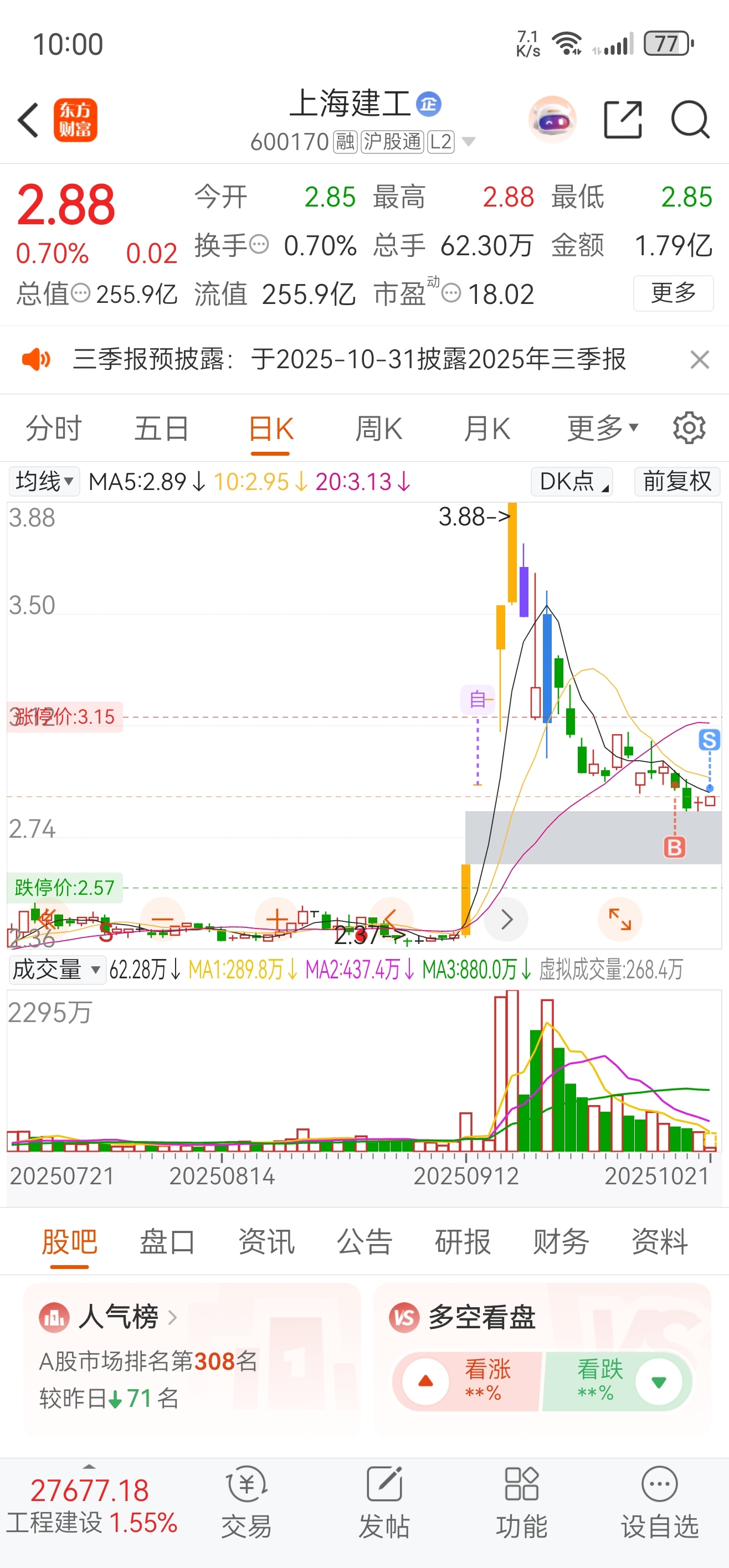 $上海建工(SH600170)$ 溜了溜了,亏四毛。