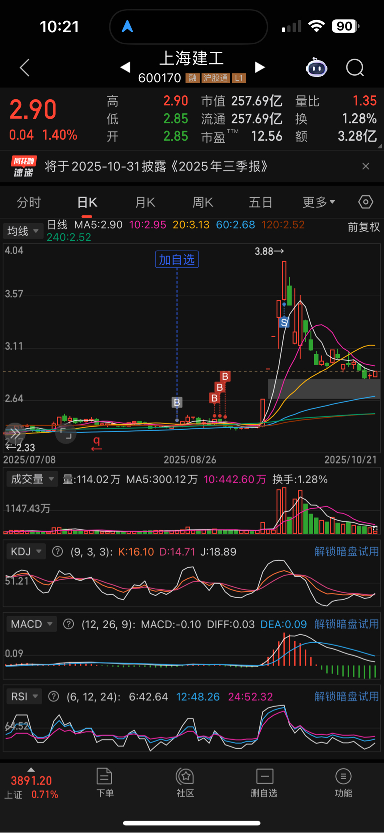 $上海建工(SH600170)$ 等你再下来一点加仓