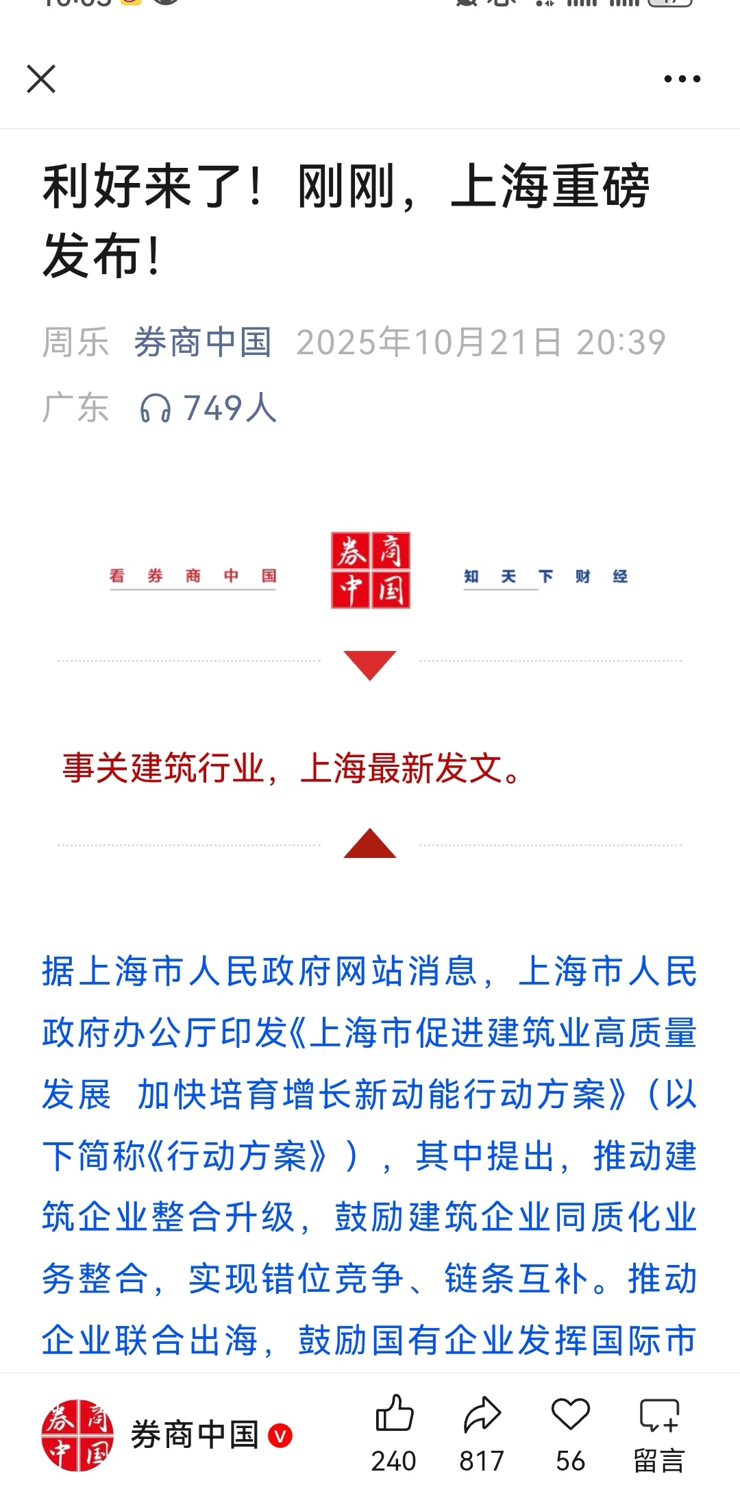 热烈预祝上海建工明日涨停