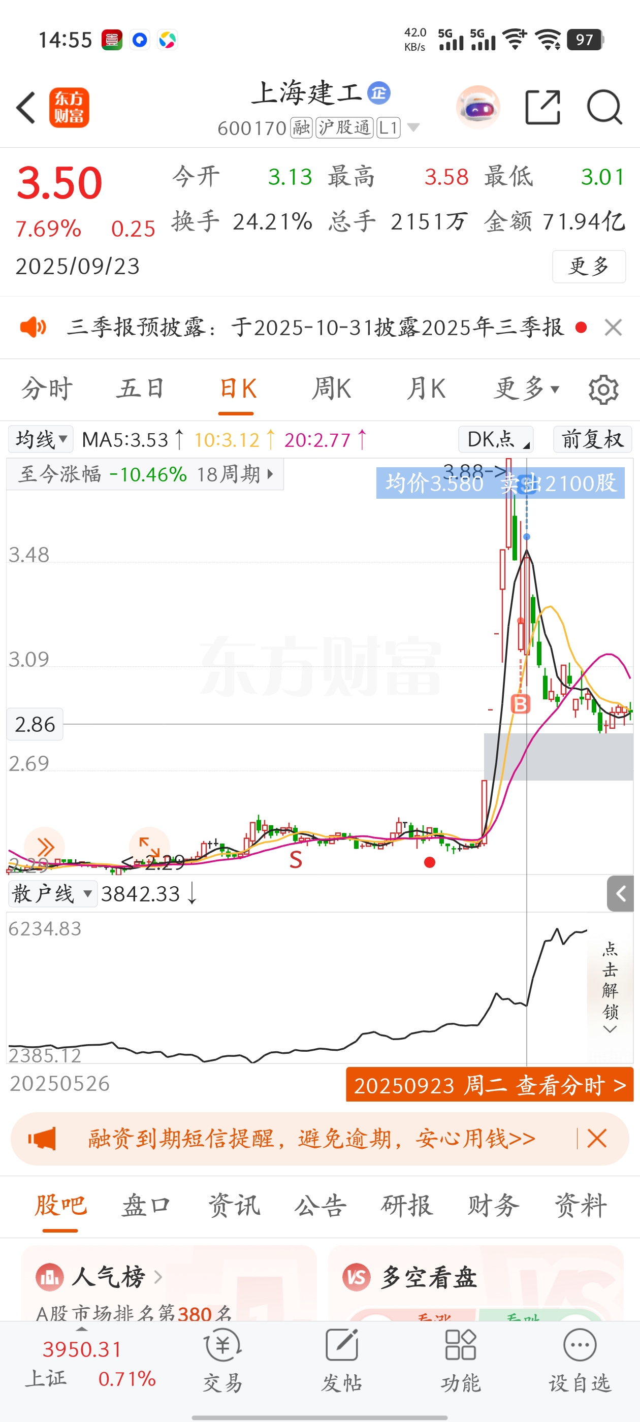 $上海建工(SH600170)$ 高点,居然被我拿到!