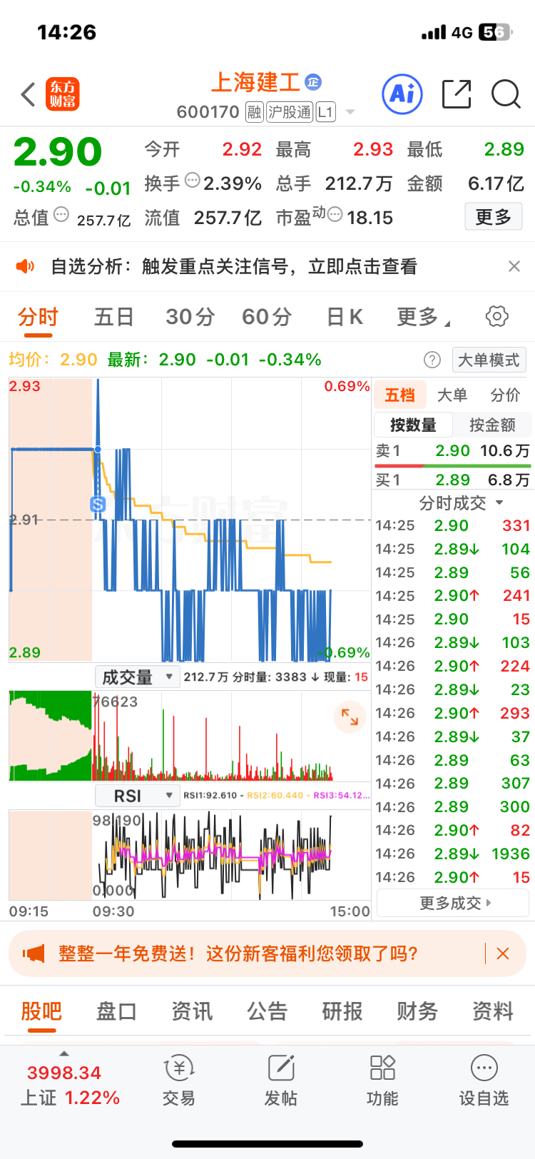 $上海建工(SH600170)$ 全割了,亏了5万,