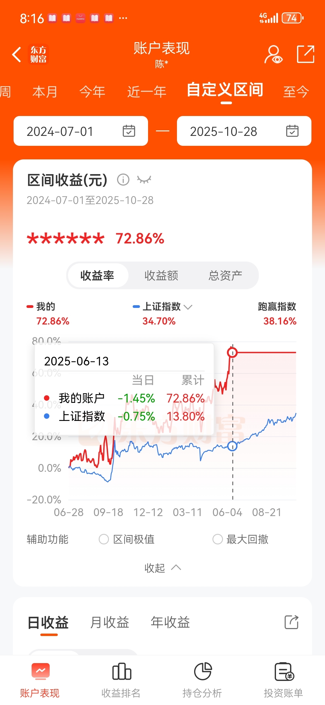 转到融资账户后,6.16不到一年115%的收益巅峰后,这几个月太难了。收益不收益