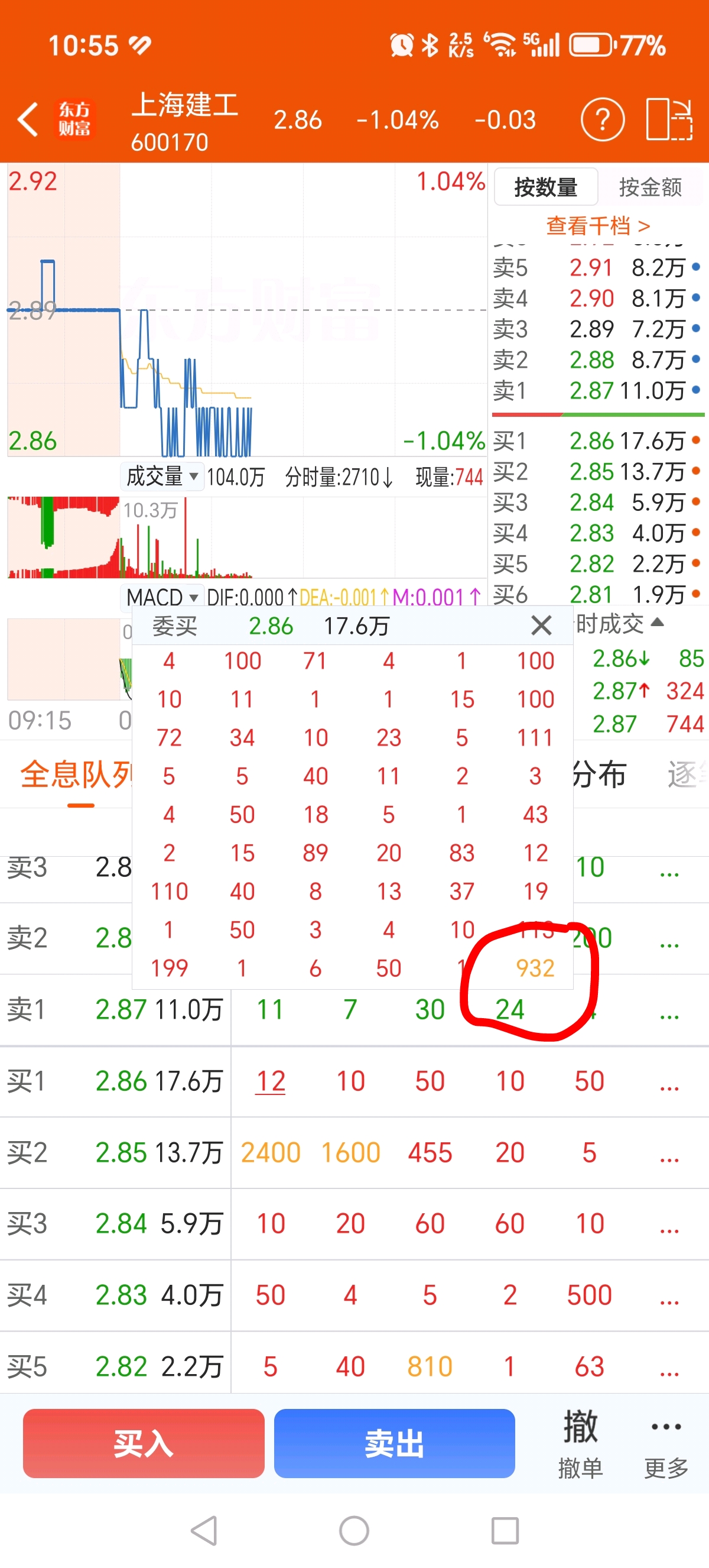 $上海建工(SH600170)$ 这里有脏东西,一直挂单撤单。量化就是出生