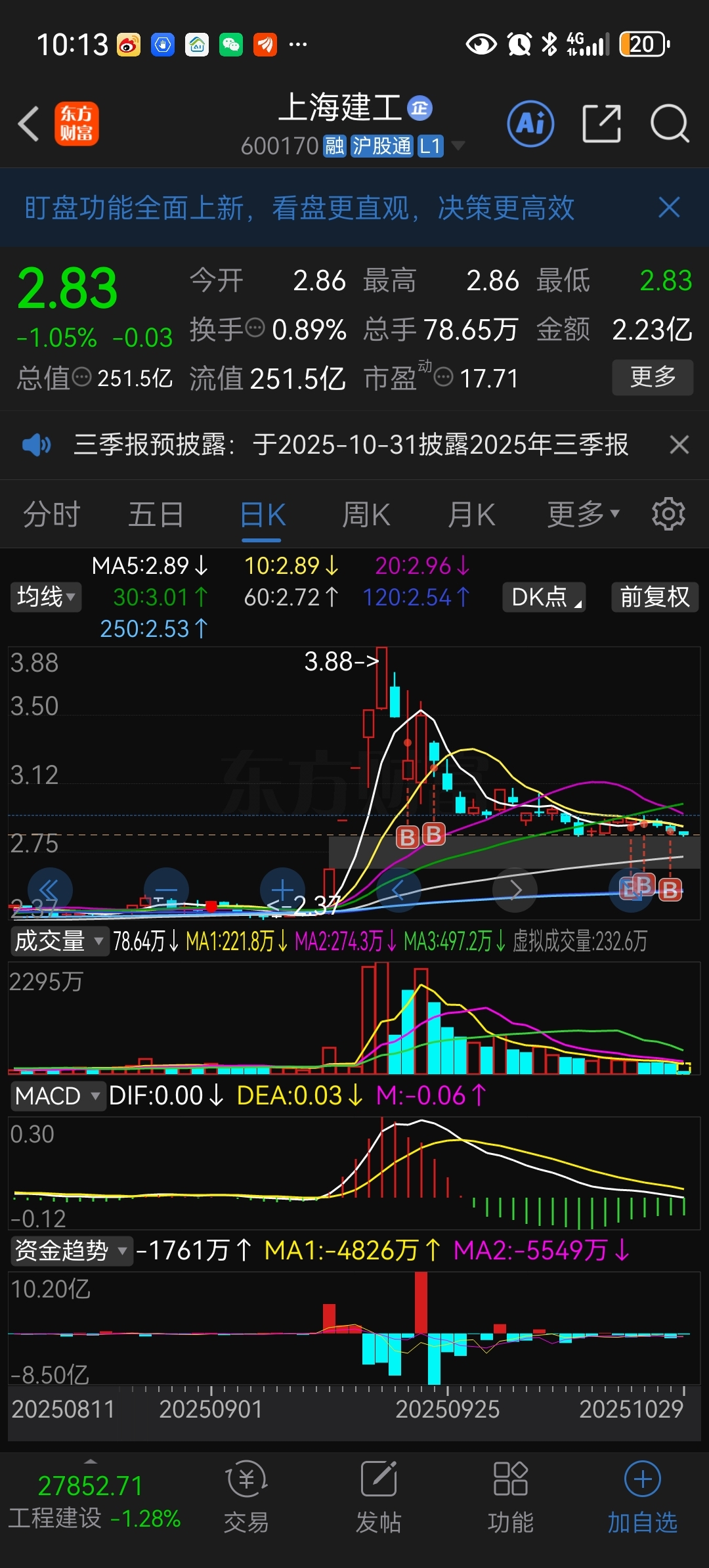 $上海建工(SH600170)$ 亏一万八,跑还是不跑