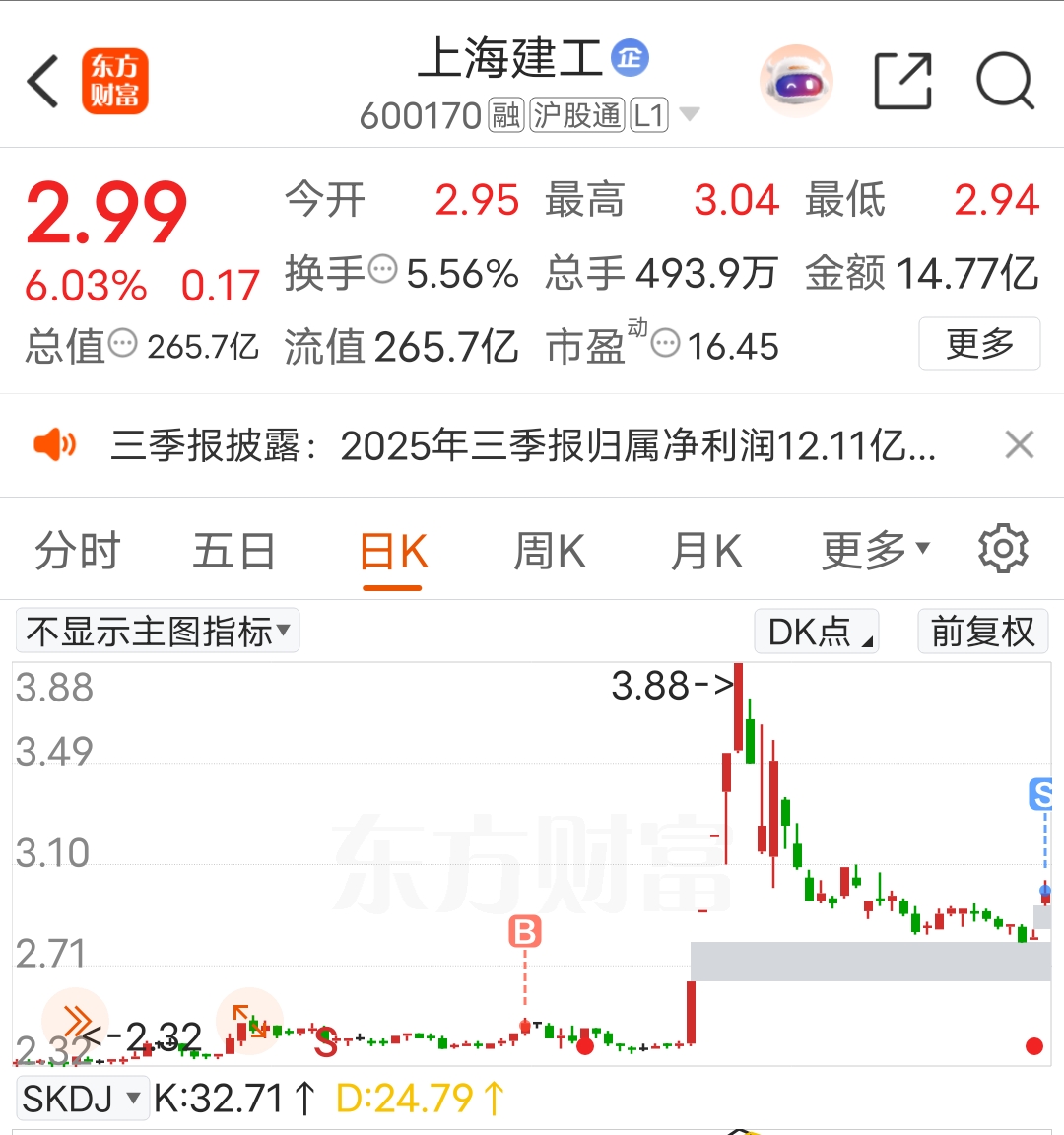 $上海建工(SH600170)$ 3.8没有跑,有点惋惜,3块跑了