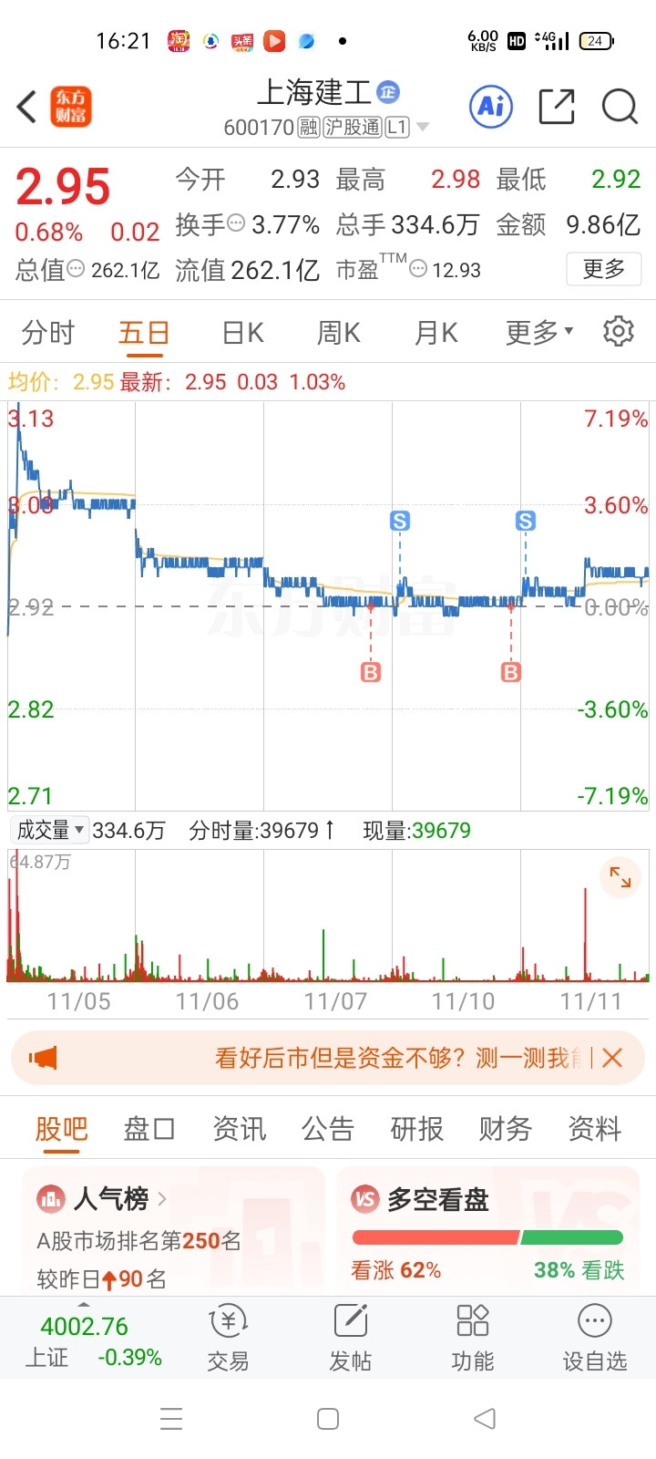 $上海建工(SH600170)$ 今天丅飞一批人,都在等92接回,估计主力不给机会了,没事,等………
