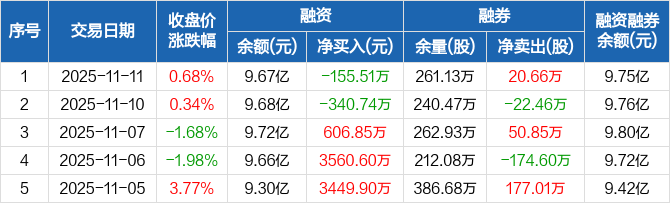 上海建工:融资净偿还155.51万元,融资余额9.67亿元(11-11)