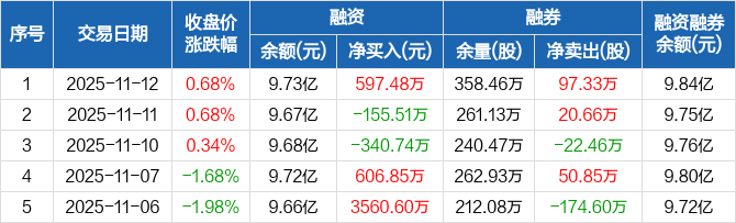 上海建工:融资净买入597.48万元,融资余额9.73亿元(11-12)