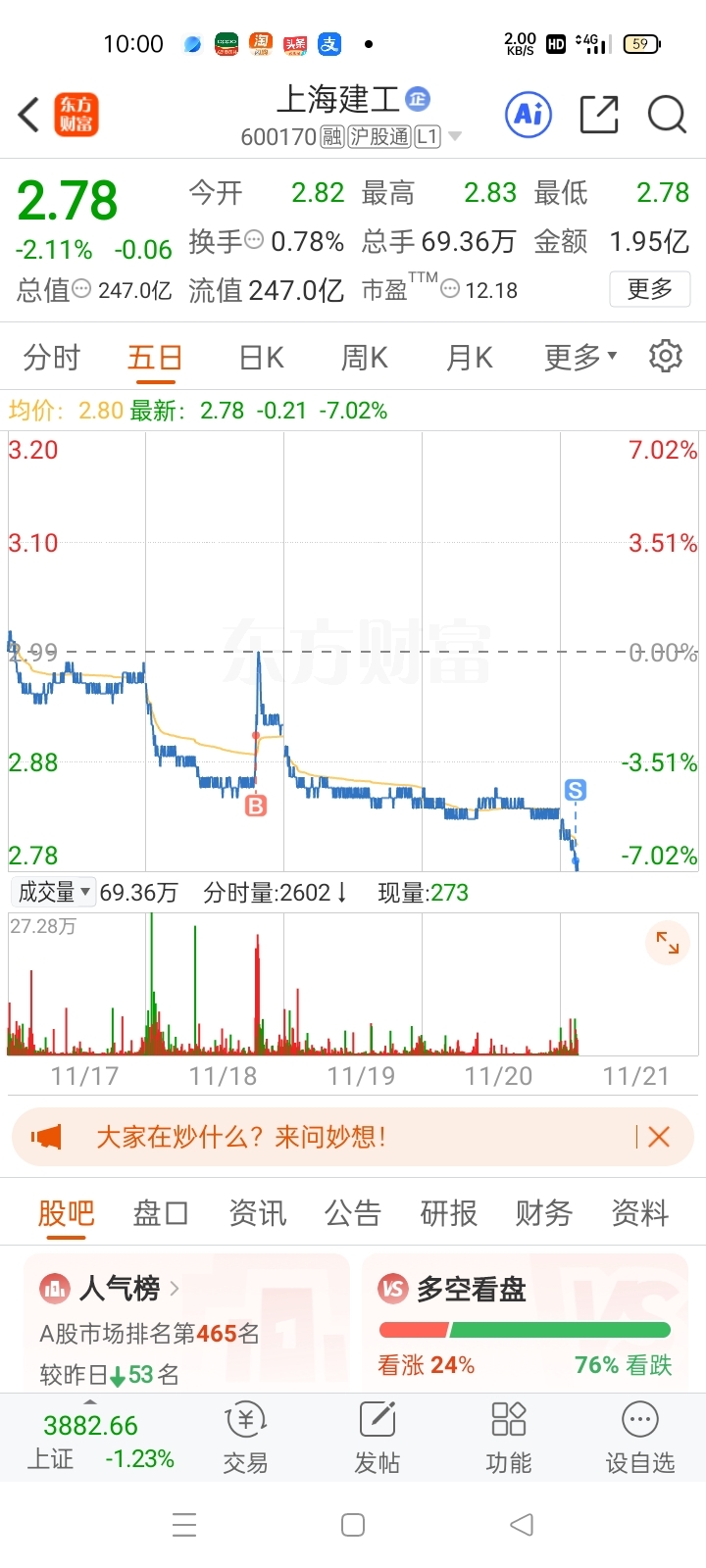 $上海建工(SH600170)$ 亏蒙了,还是怕了,