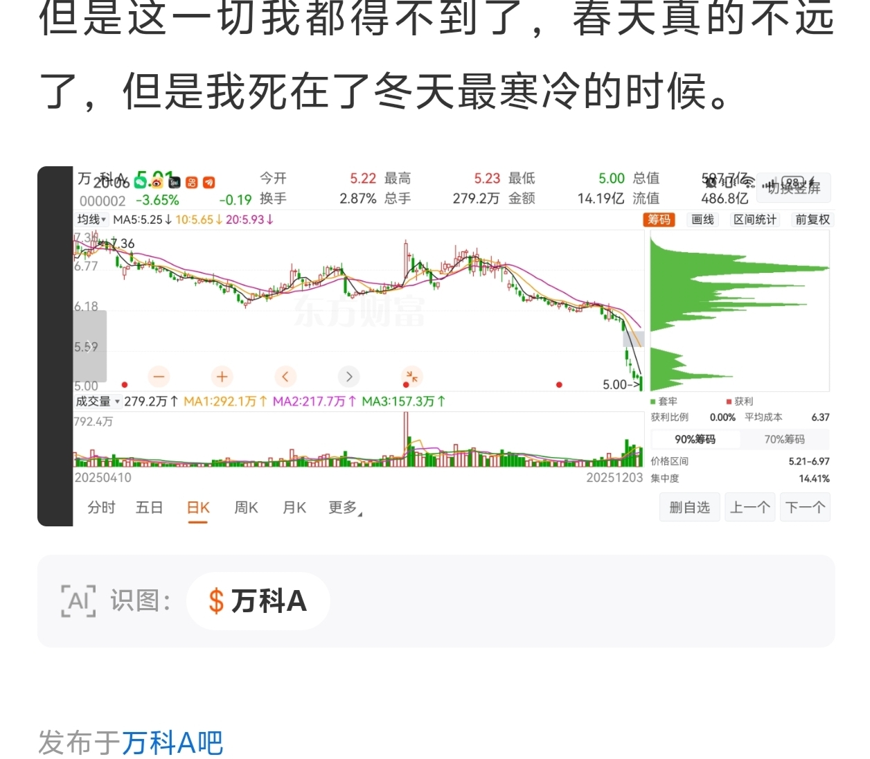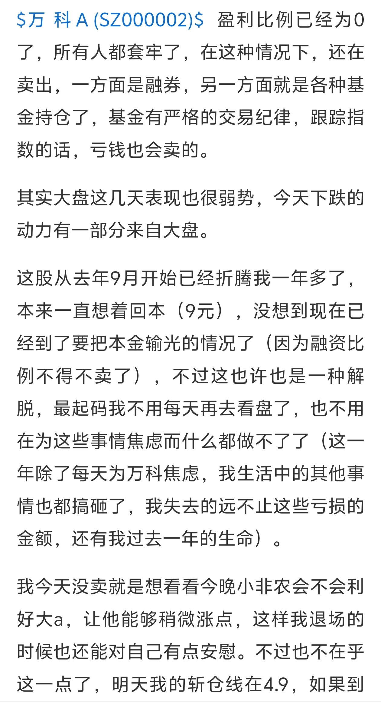 晚上出去吃夜宵回家,没事看看股吧。发现一个买万科的小姐姐要爆仓了。看完文章觉得无语。
