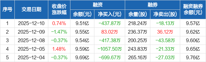 上海建工:融资净偿还437.87万元,融资余额9.51亿元(12-10)