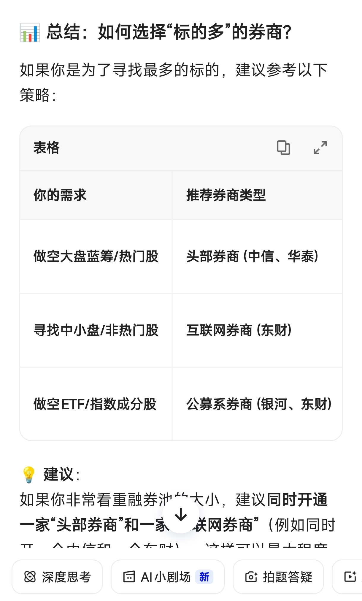 $上海建工(SH600170)$ 散户不是不能融券,一般50万资金的散户都能开通信用账户做融券。不过选择券商机构很重要。以前机构或散户融券需要通过中金(这样会公开数据,估计目前应该不会被散户或者机构广泛采纳了),但随着量化交易频繁,很多券商机构融券可以做到融券买入卖出一日游,也就是所谓的T+0,那么如何选择多的融券池源?AI给的总结:东财+中信。