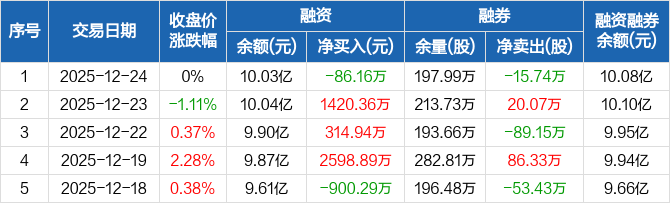 上海建工:融资净偿还86.16万元,融资余额10.03亿元(12-24)