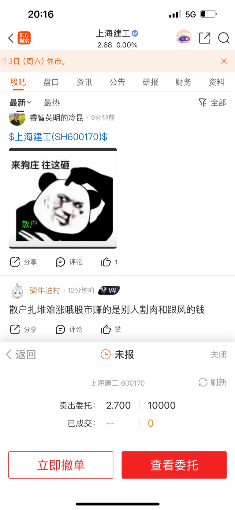 $上海建工(SH600170)$ 主力我元旦要出去放松一下!270先给你1万股要吗?带血得筹码!急用钱!还贷款