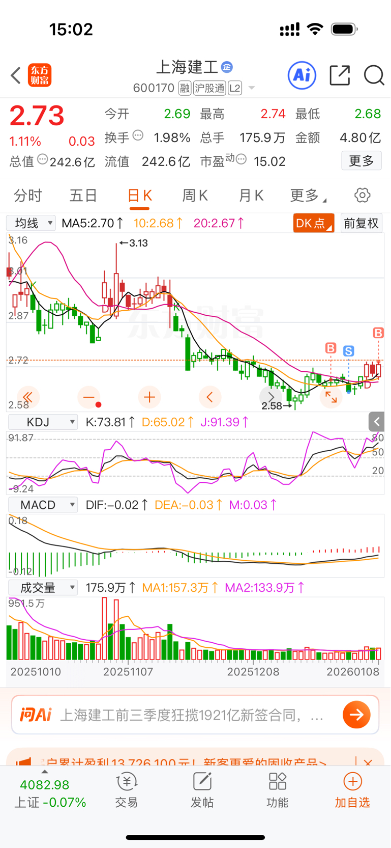 $上海建工(SH600170)$ 我这韭菜