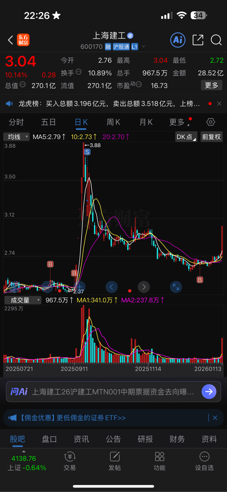 $上海建工(SH600170)$ 上一次30多个点,这次在吃30个点也就心满意足了