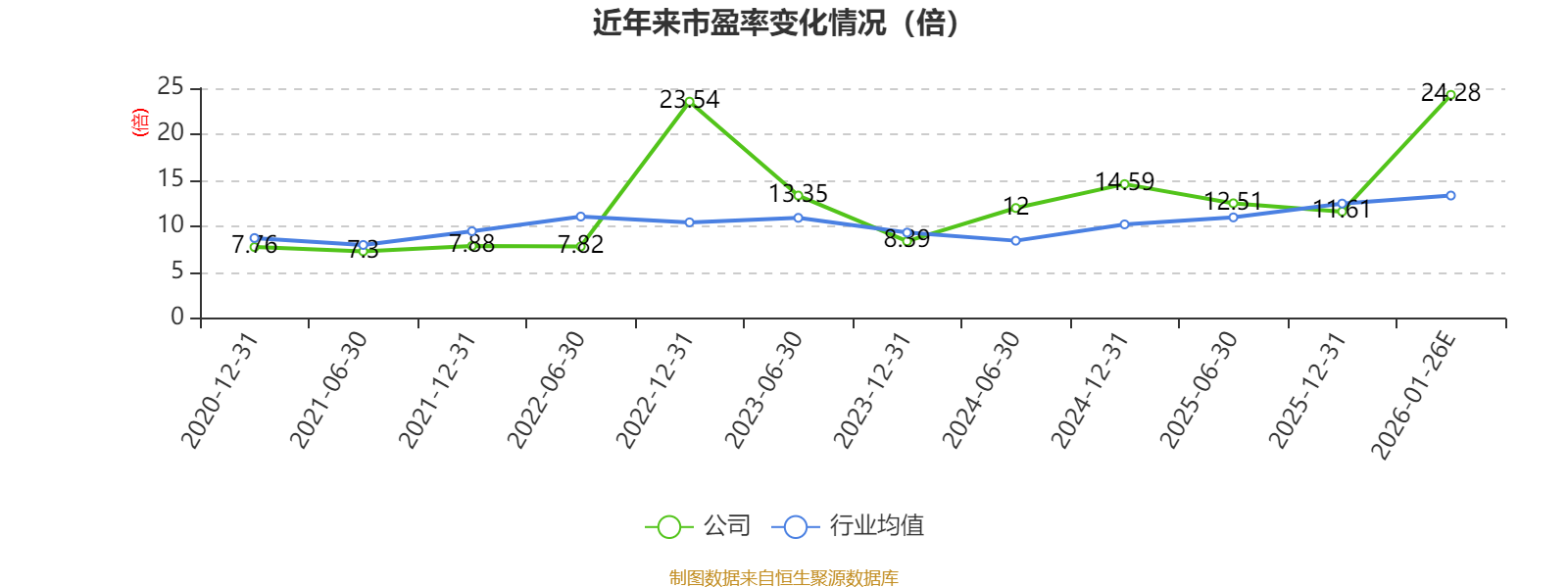 以本次披露业绩预告均值计算,公司近年市盈率(TTM)图如下所示: