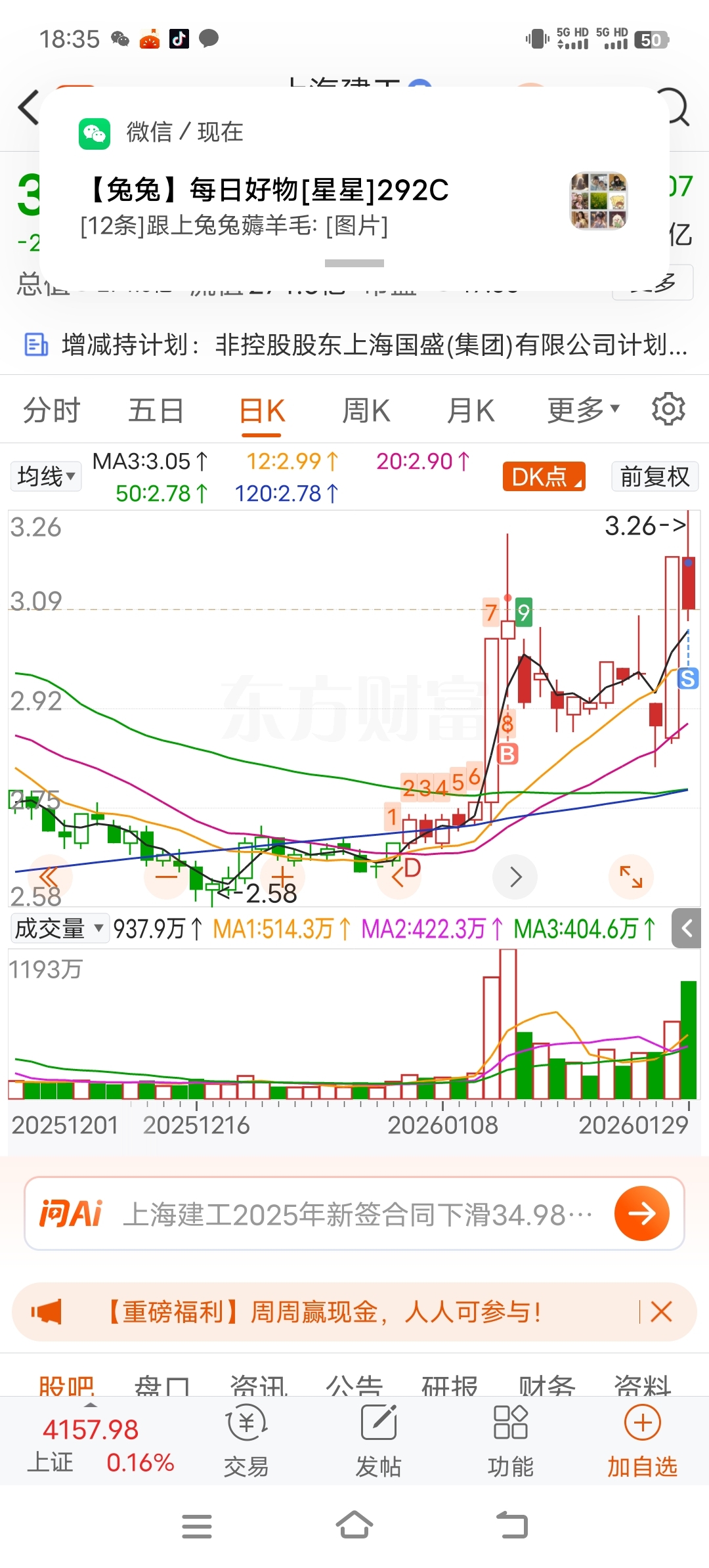 $上海建工(SH600170)$ 赚了一杯奶茶钱