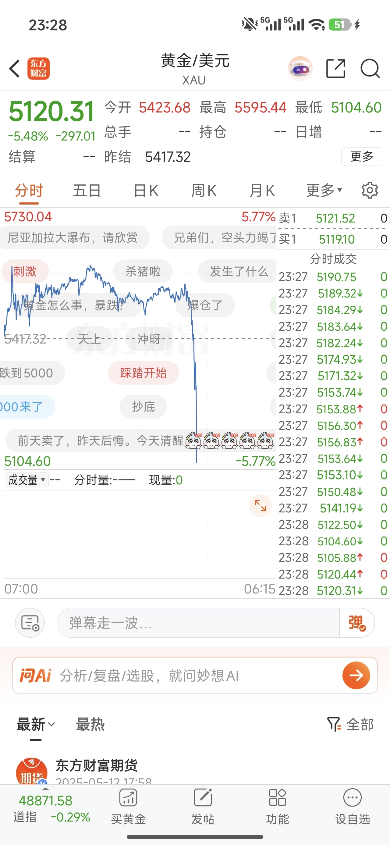 今天刚进来,不会跟黄金吧
