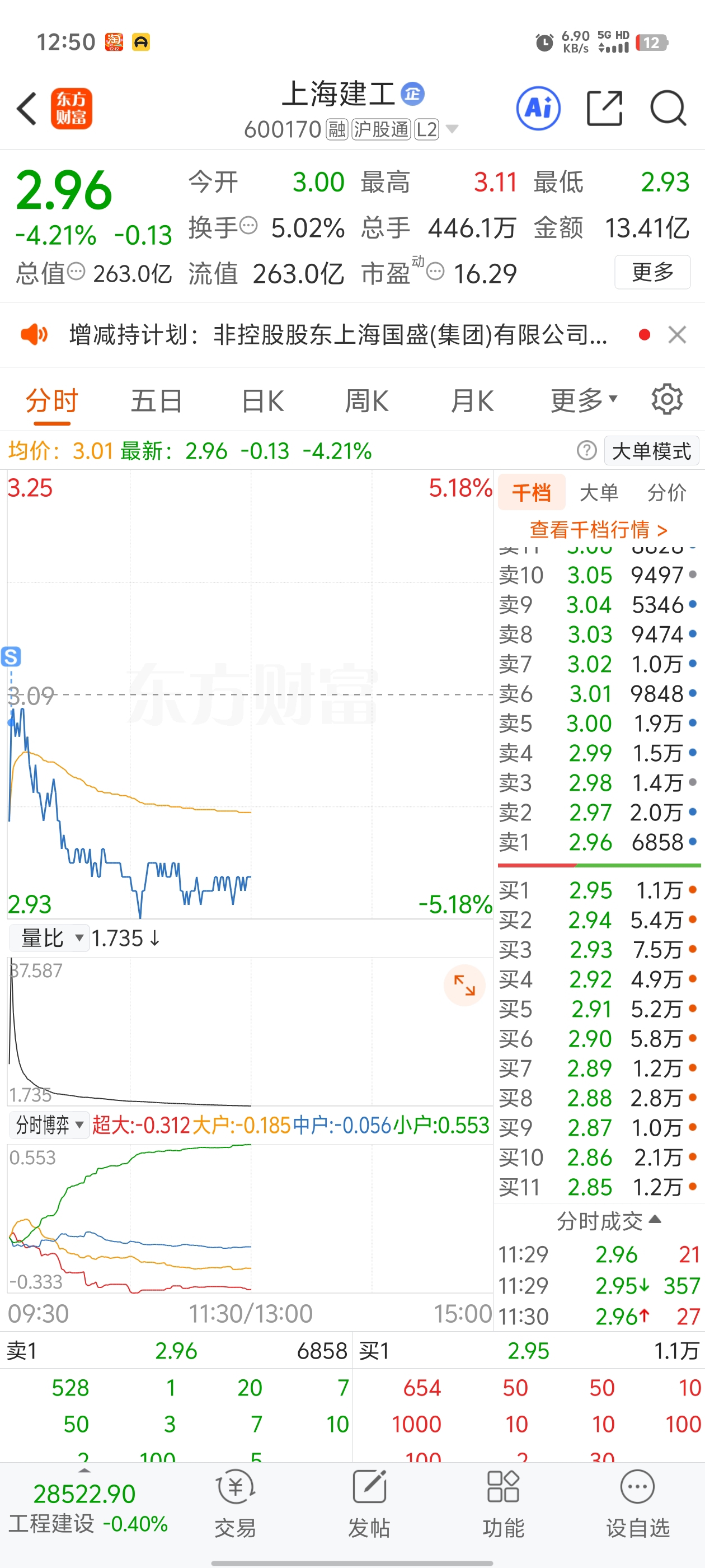 $上海建工(SH600170)$ 下午再B回来,主力打我撒