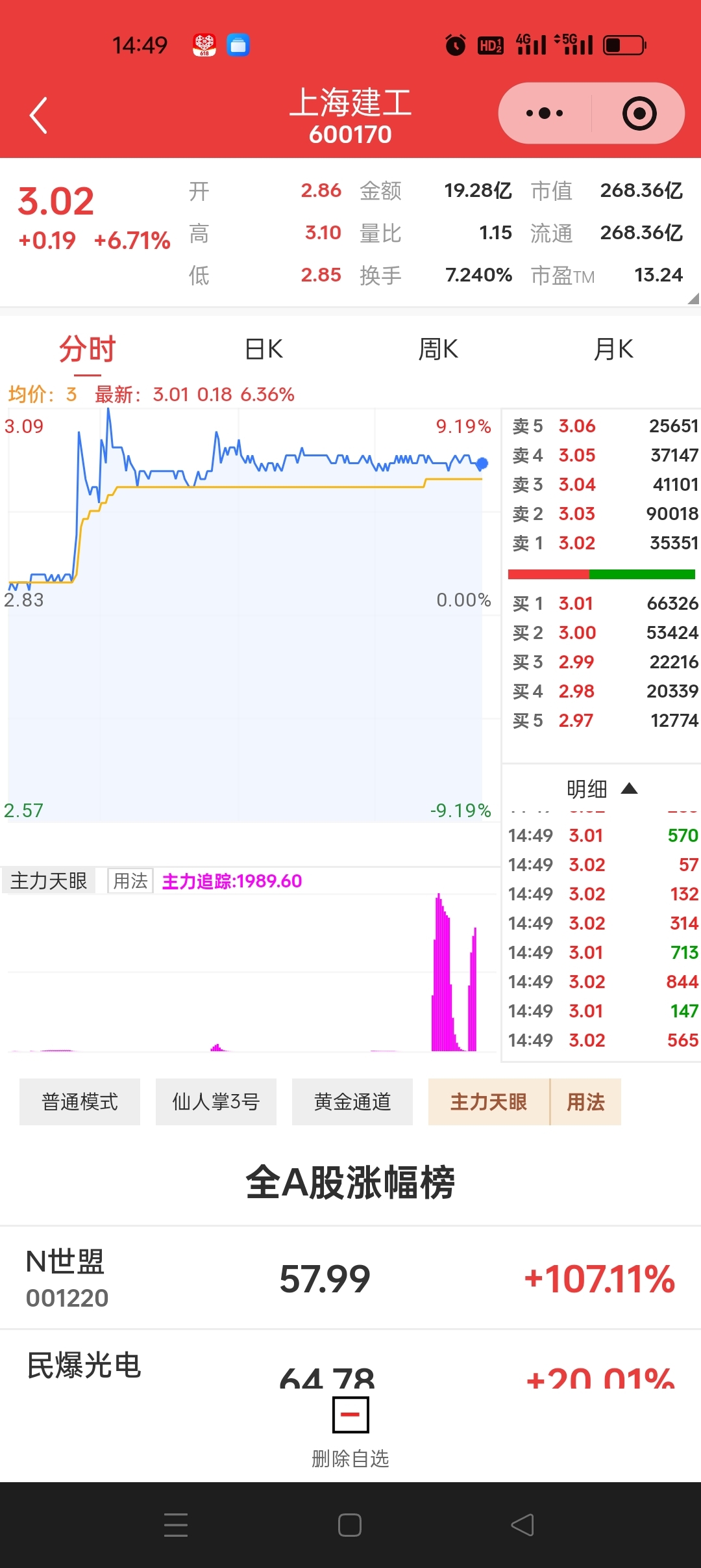 $上海建工(SH600170)$ 尾盘主力大吸,明天稳了