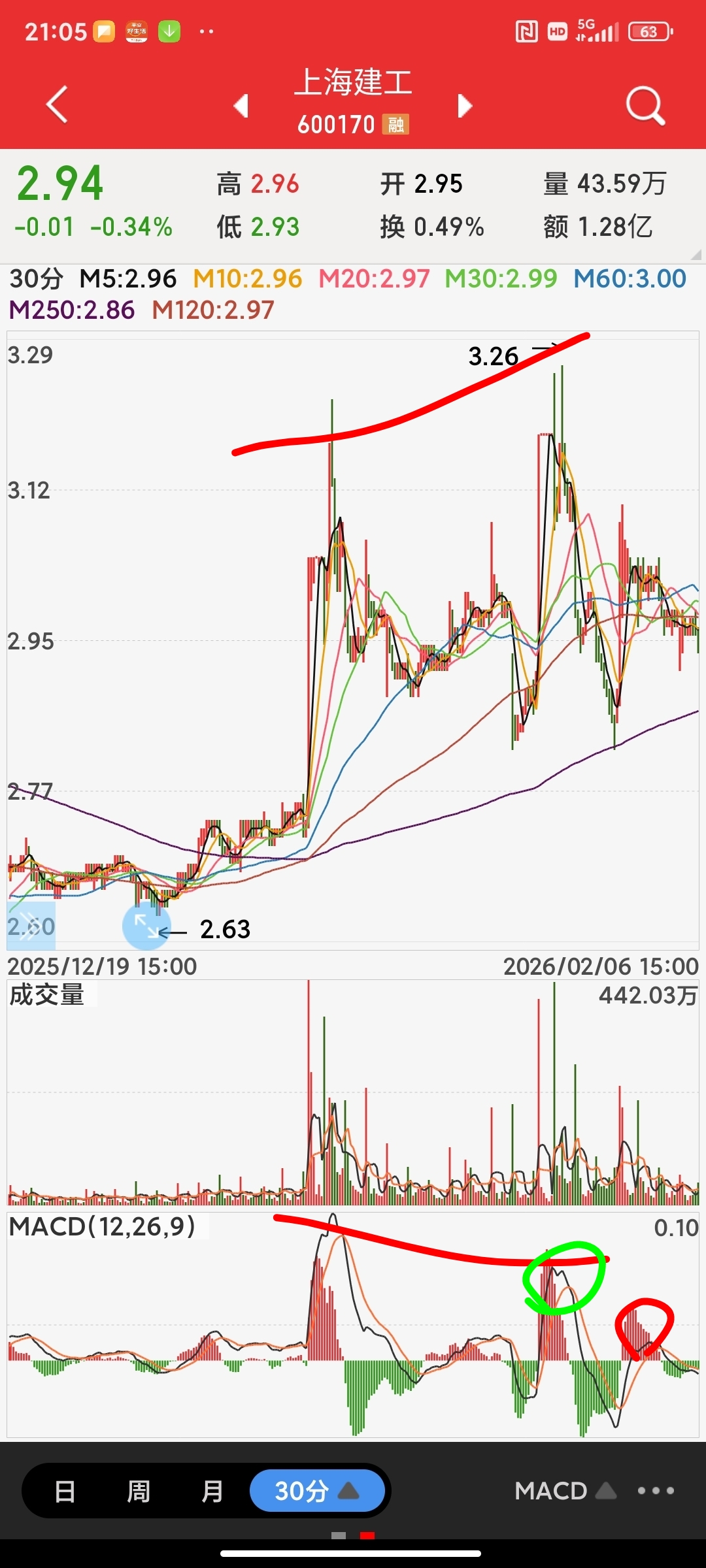 图一是31号帖子。。判断突破322后两种走势。。它走出第二种就是走出图二做个30顶背离引起图三日线回调走势。。因为周线金叉那么它目前是周线上涨中的日线回调。。日线回调结束标志是日线金叉或者图四跌破282做30底背离。。如果强拉日线金叉那么30分级别就不做底背离。。。日线回调结束就会突破326。。周线级别有过388的走势。