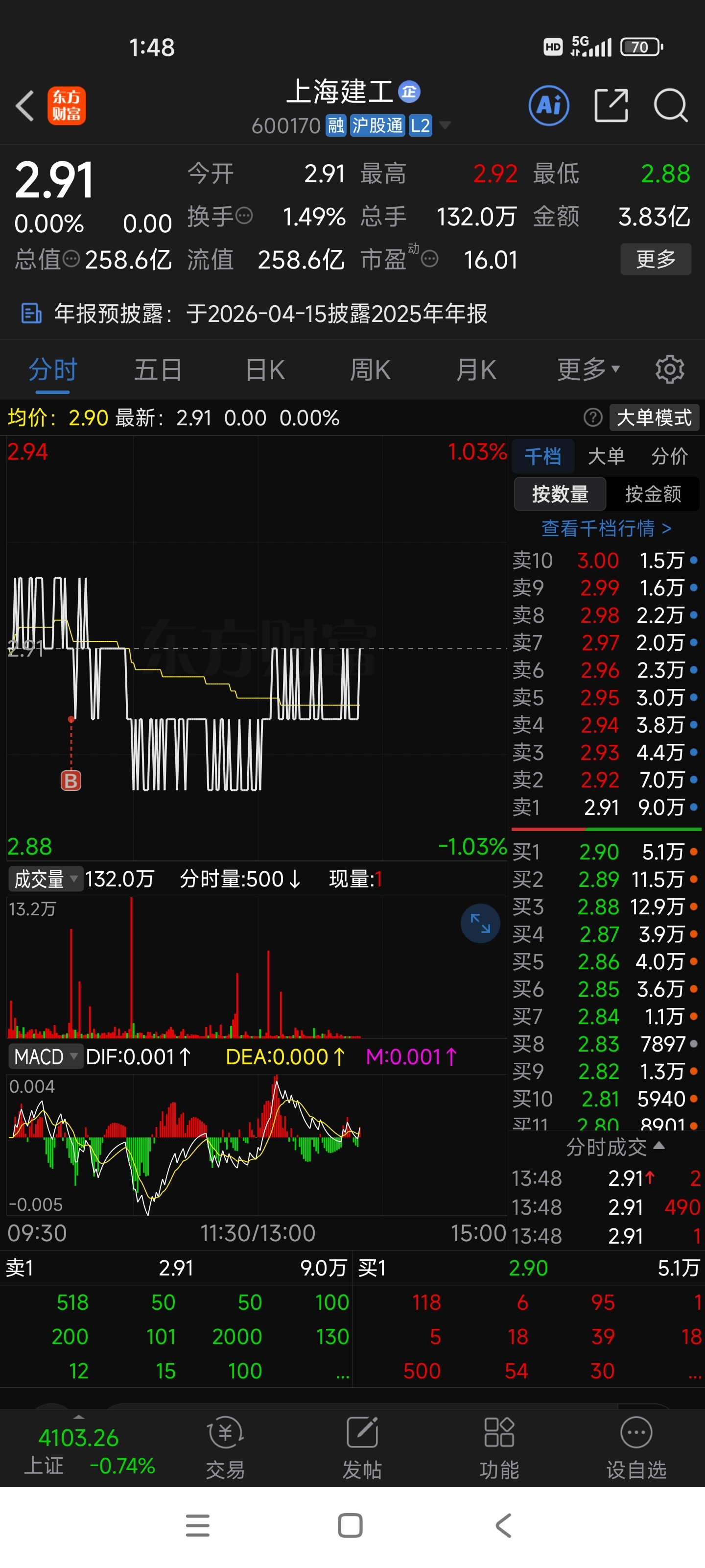 $上海建工(SH600170)$ 后一天要求不高的,涨几分钱就行!