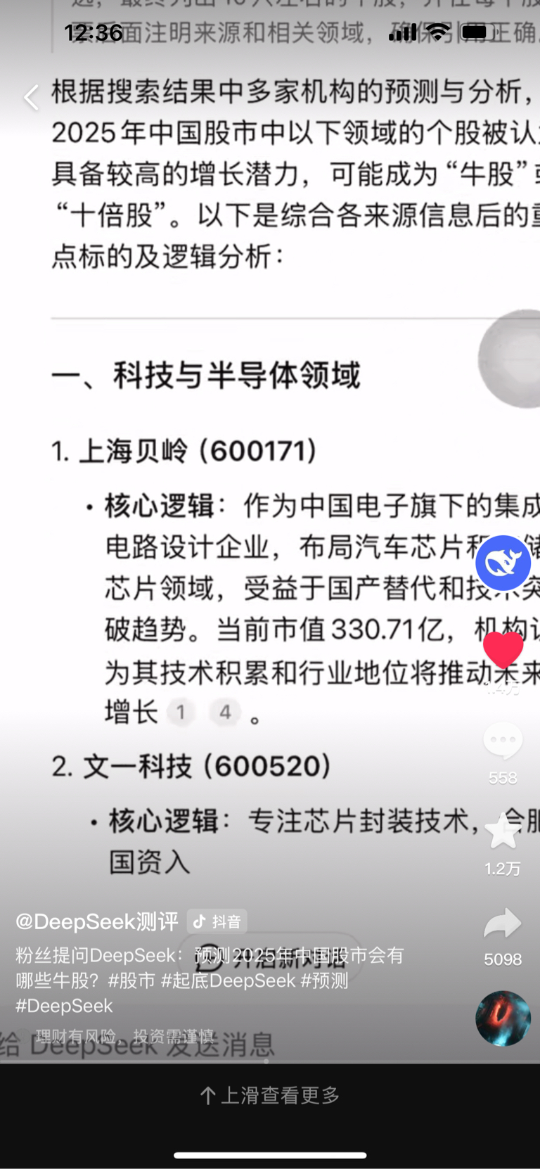 $上海贝岭(SH600171)$ 热度这么高,全是被抖音Deepseek官网预测吸引过来的吗