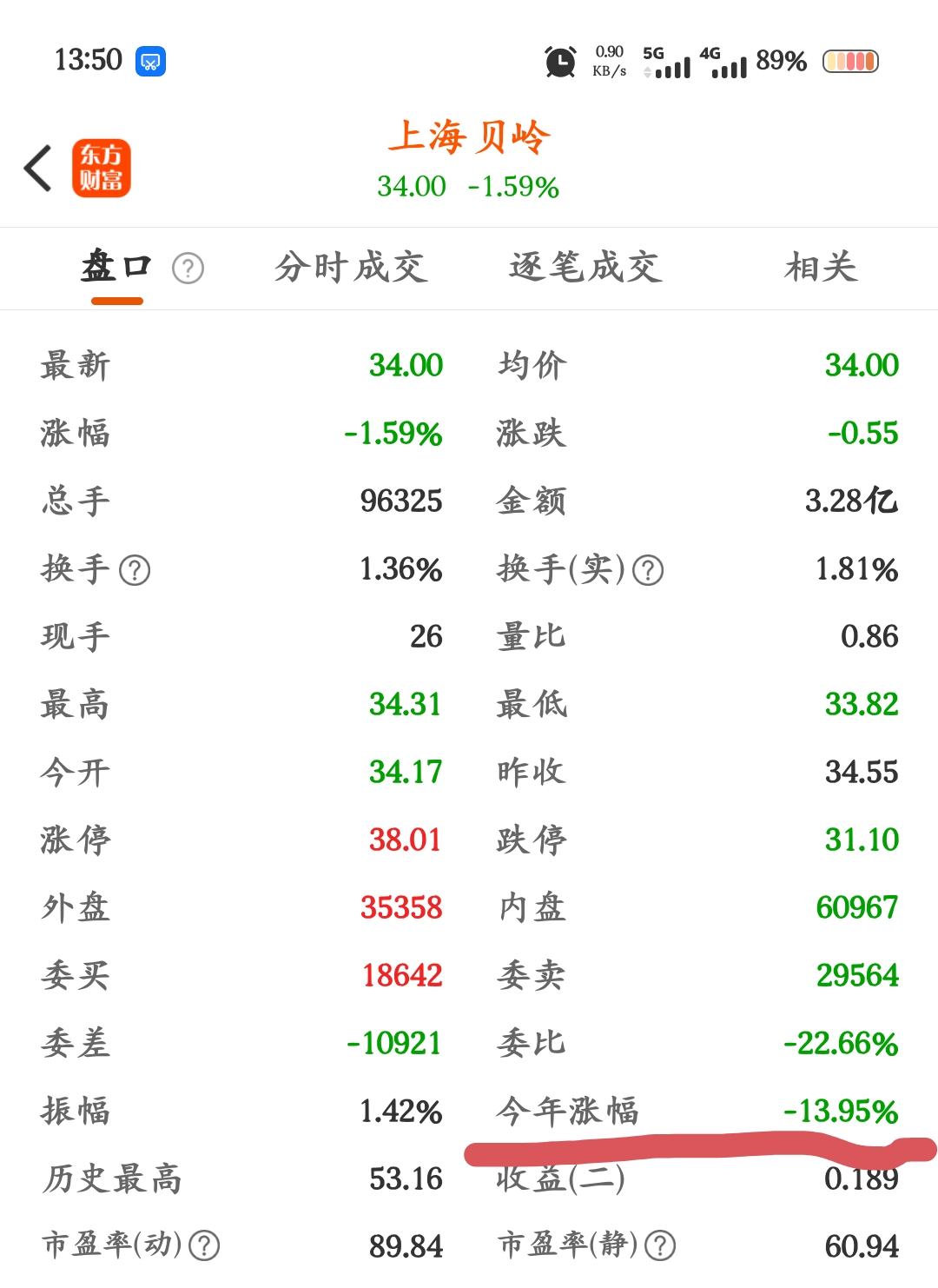 $上海贝岭(SH600171)$ 今天涨幅是负数