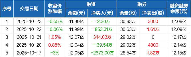 上海贝岭:融资净偿还2.3万元,融资余额11.99亿元(10-23)