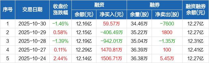 上海贝岭:融资净买入59.57万元,融资余额12.16亿元(10-30)
